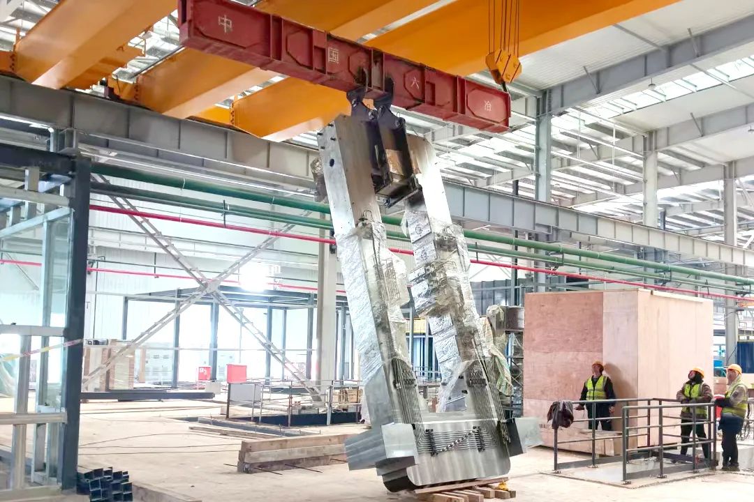 神隆寶鼎項(xiàng)目鋁箔軋機(jī)牌坊吊裝完成