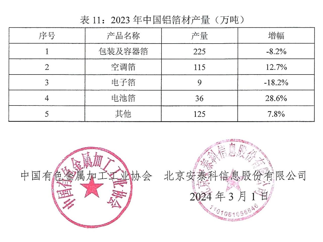 2023年銅鋁加工材產(chǎn)量的通報(bào)文件?。?!